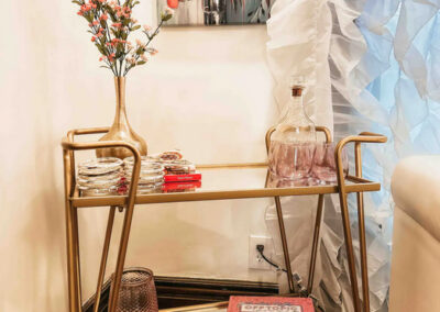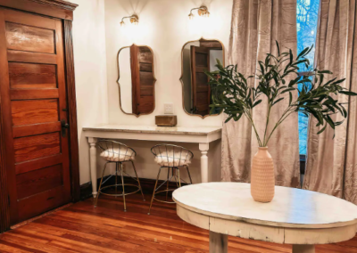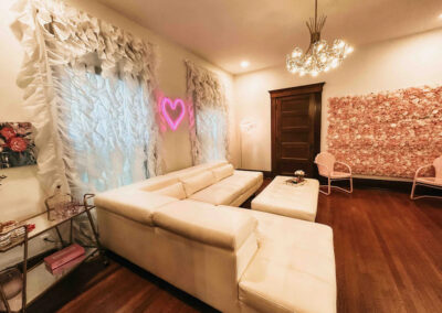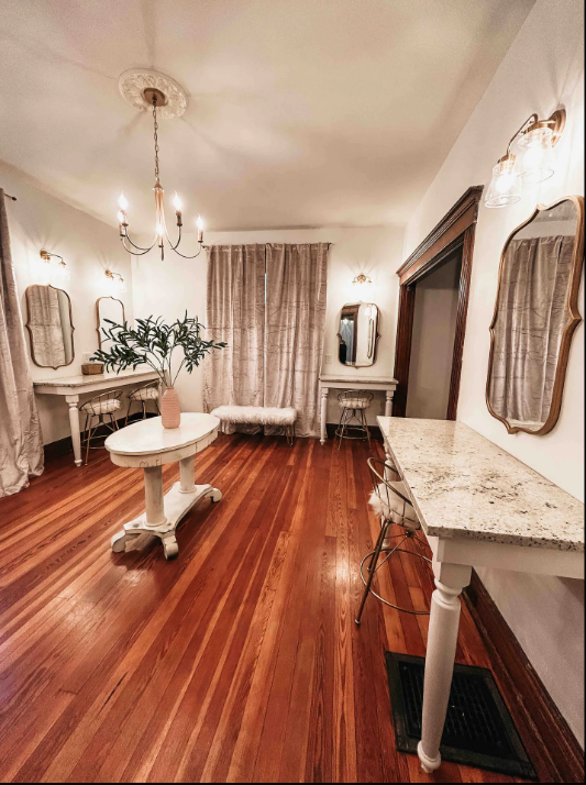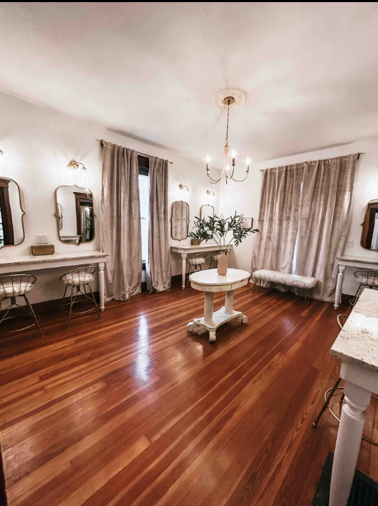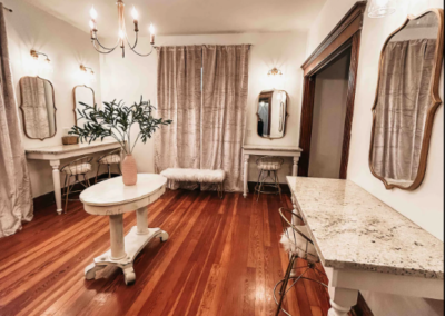 Glam Room: The perfect spot to get ready with your bridesmaids for the big day or for a girls night on the town. The space has 6 vanity stations with great lighting and plenty of mirrors. Also includes a dressing area.