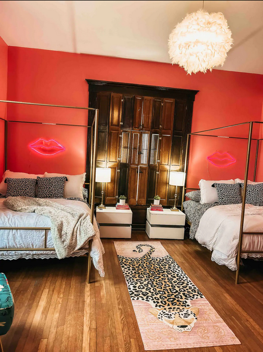length mirror and a fun neon theme.
