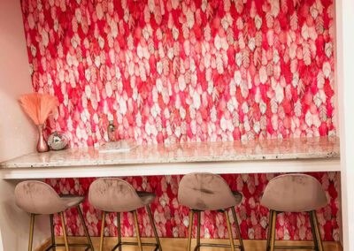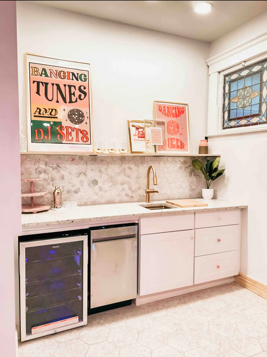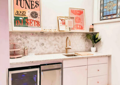 Barbie Bar: The bar/dance floor has a disco bar, seating, blender, beverage cooler, dishwasher and more photo ops! ( also leads to outdoor space!)