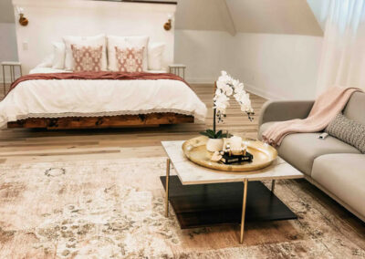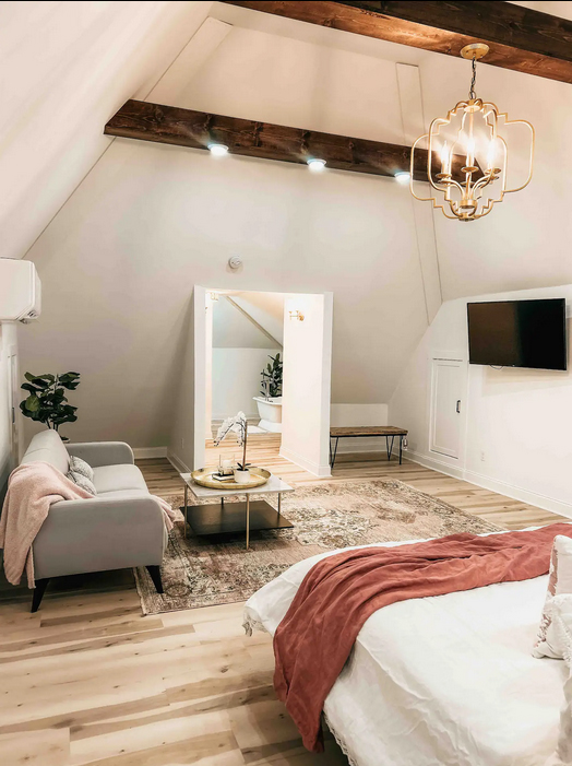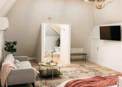 The Honeymoon suite: Located on the 3rd floor is a 100% newly constructed King suite. The king bed, couch, TV, dressing area, soaking tub will be a magical wedding night stopping point.