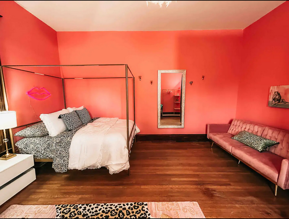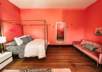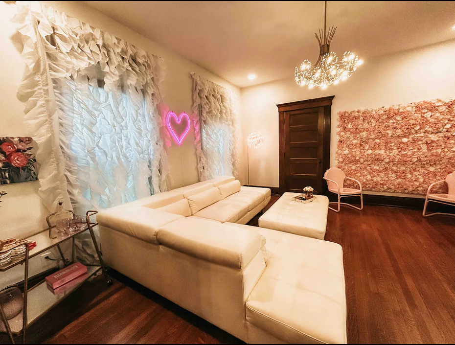 Pajama Party Room: This room boasts a tv, karaoke machine, games, fun backdrop wall for pics, egg chair and so much more!