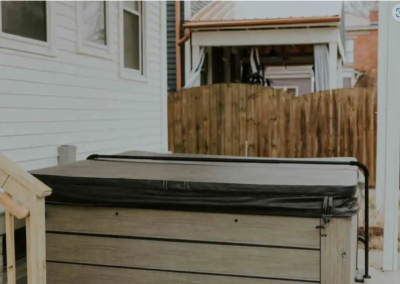 Outside you will find multiple areas to gather. The firepit area to connect over. The hot tub to relax in or the upper patio. Corn hole and other fun activities as well!